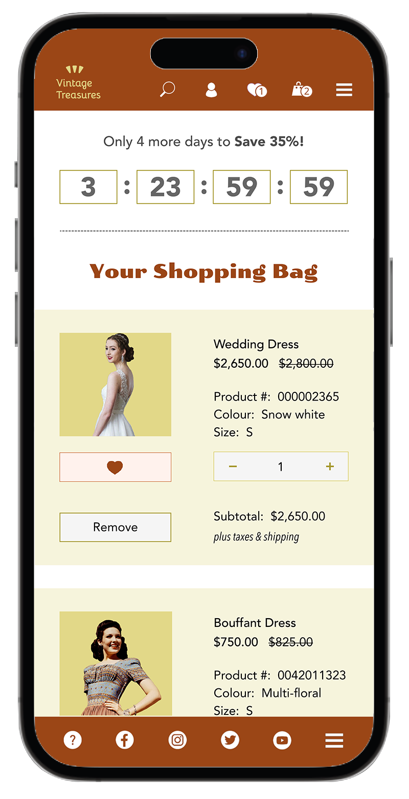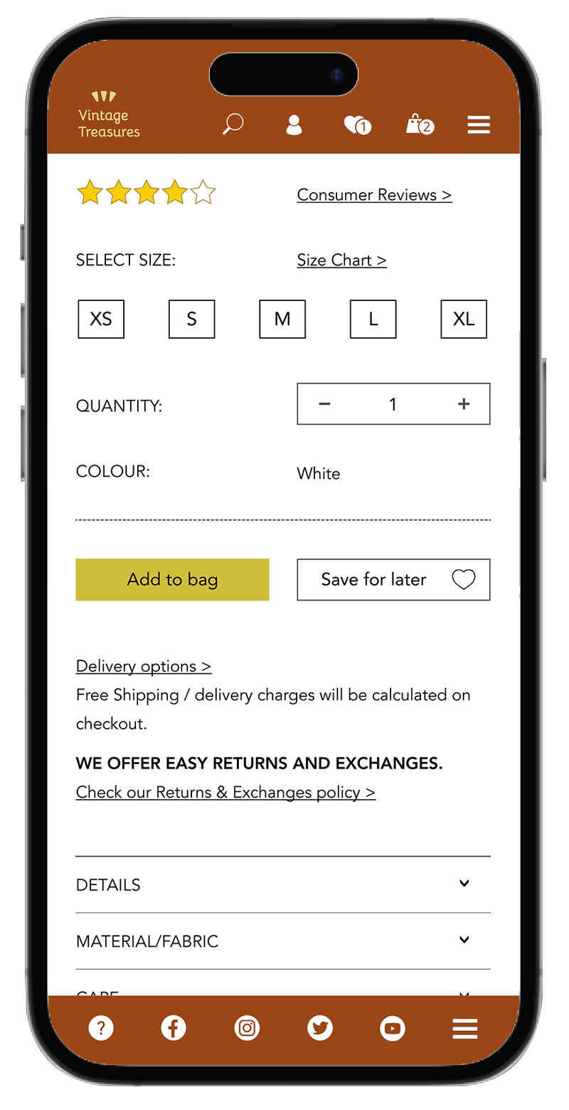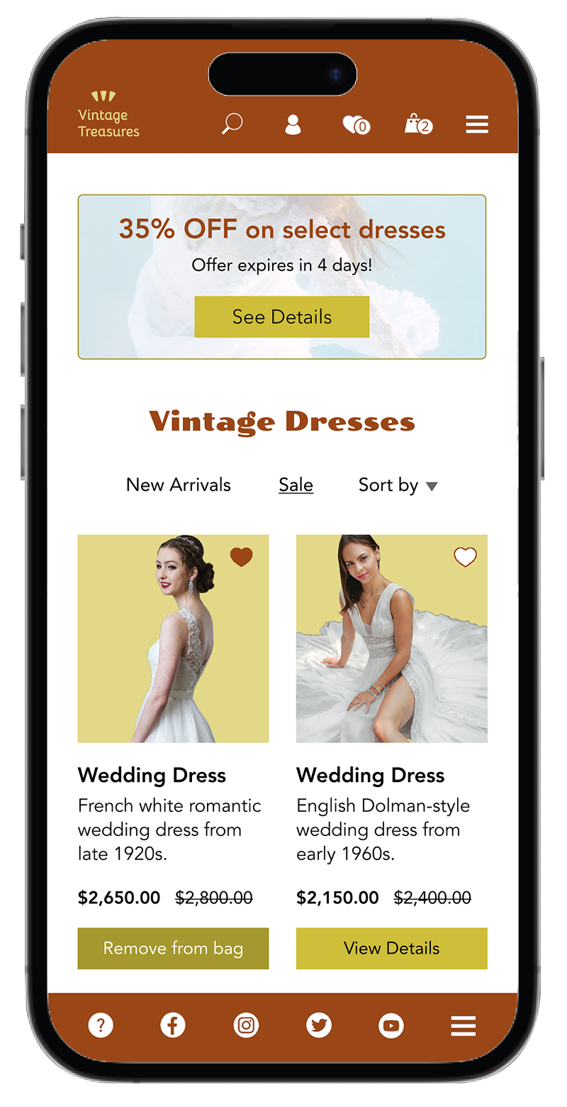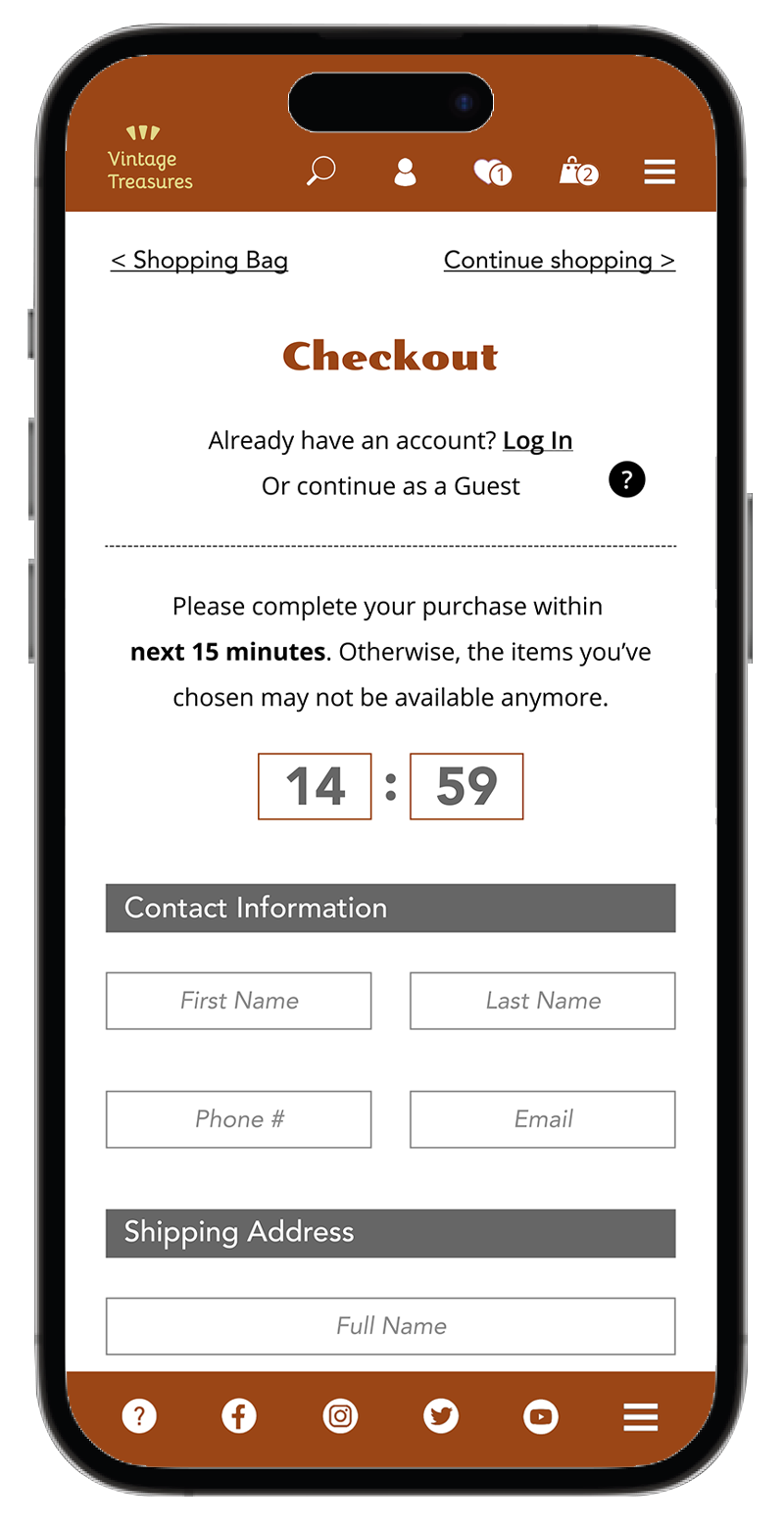 • There was also a constant reminder in the back of my head that I’m not creating this website for myself but for a client/stakeholder and a large audience. It’s not about me, what I would like but what would potential Vintage Treasures customers want and need.